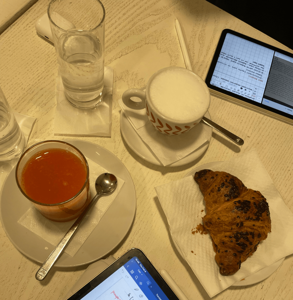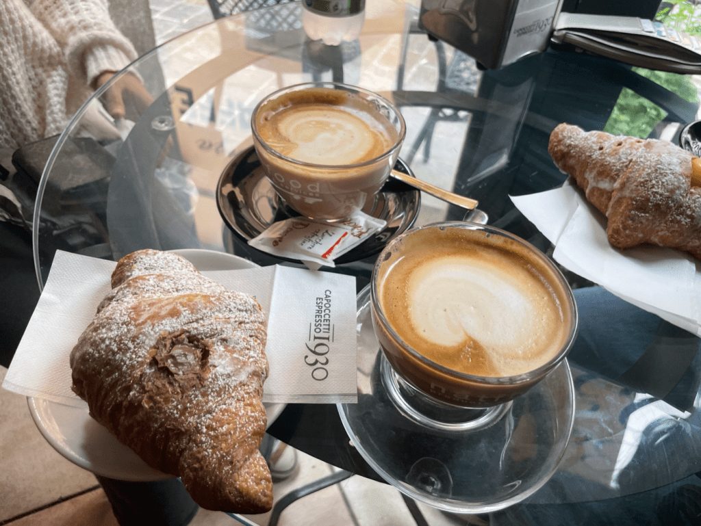 already knew what I had wanted: a cappucino and cornetto with chocolate.