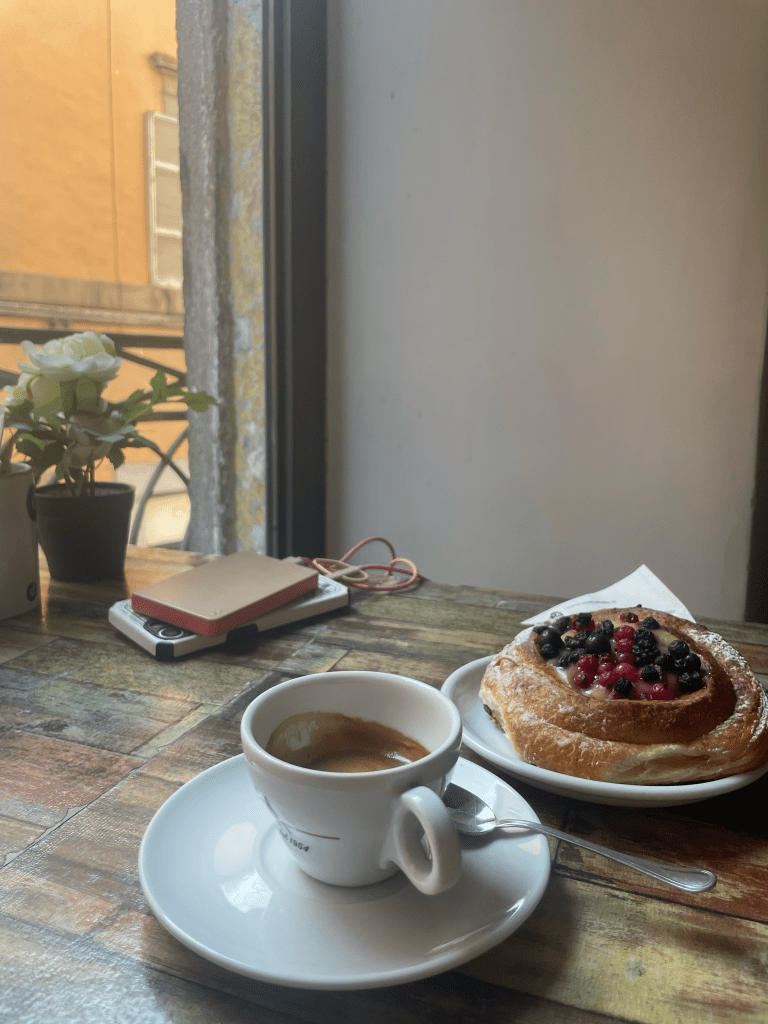 Tasks that felt so simple back at home– like getting a cellular plan, subscribing to a gym membership, ordering at cafes, and even having to walk home– felt like a burden. Everyday as school ended, I would find the most direct, quickest route home on maps and find myself bustling my way through the crowds, which was quite the opposite of the ‘slow-living’ in Italy that I was supposed to embrace. I always went to the same bar with the same order every time, a cornetto with chocolate and cappuccino, but I always peered over at the bombas regretting getting the same order over and over again. I was sitting at the threshold peering in, but I didn’t quite have the courage yet. The readiness to embrace the uncomfortable, the new opportunities and experiences waits on the other side until the day that I’m ready to step in and immerse myself and eventually to trust the uncomfortable.